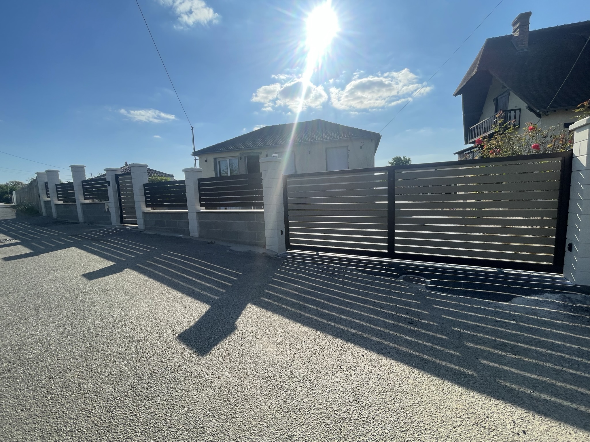 Enfin, il est temps de poser les luminaires extérieurs, la motorisation du portail et l’interphone.