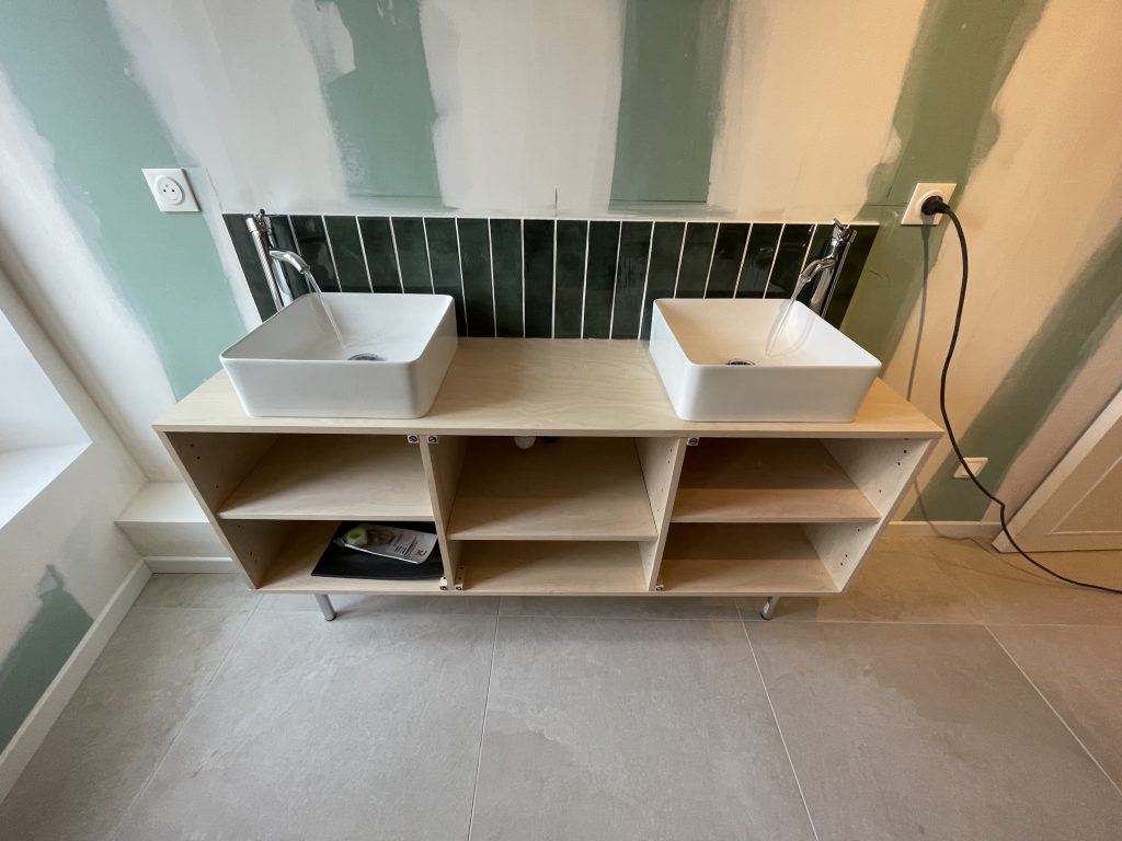 Si le client a souhaité réaliser lui-même la peinture pour maîtriser son budget, notre équipe a pris soin de l’accompagner en lui fournissant des conseils pratiques. Choix des teintes, finitions adaptées à l’humidité, harmonie des couleurs : nous avons guidé le client pour qu’il conserve la cohérence esthétique de son projet. Cet accompagnement sur mesure illustre notre proximité et notre volonté de créer une véritable relation de confiance.