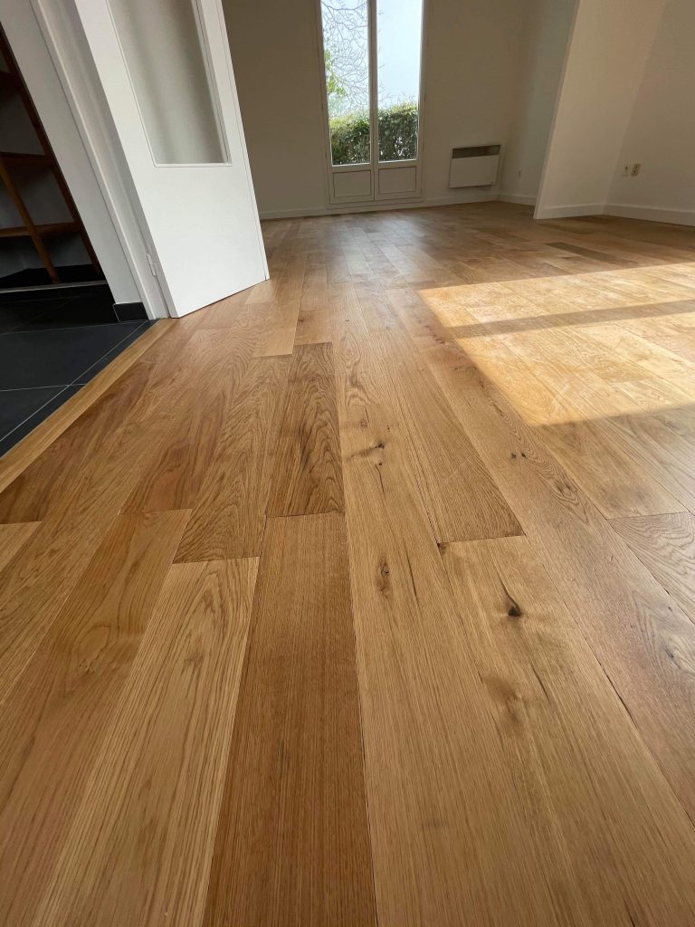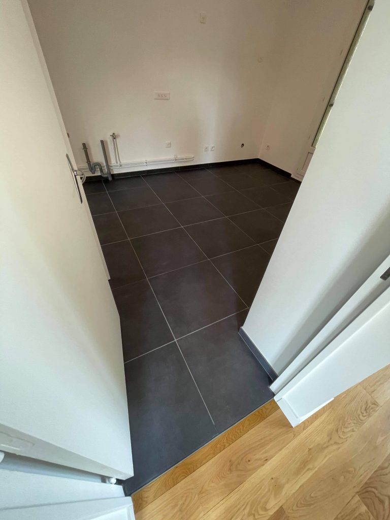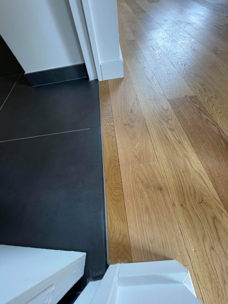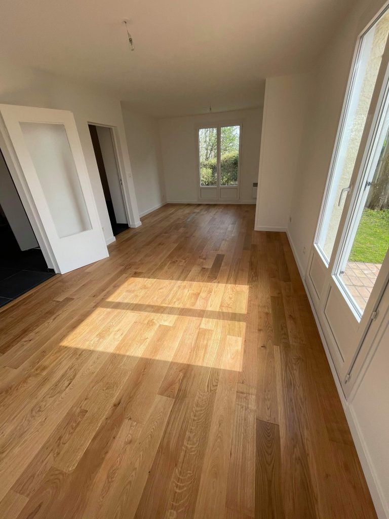 Pour ce chantier nous avons refait l’ensemble des enduits et de la peinture. Nous avons fait la pose d’un sol Parquet dans le salon. Pour l’entrée le client a choisi un carrelage anthracite que nous avons également mis dans les sanitaires. (toilette et salle de bain).