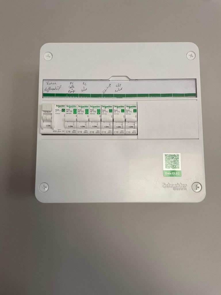 L’ensemble des circuits électrique ont dû être repensés afin d’assurer aux clients la mise de normes de l’ensemble de l’électricité. La pose d’un tableau électrique est venue compléter la mise aux normes électrique.